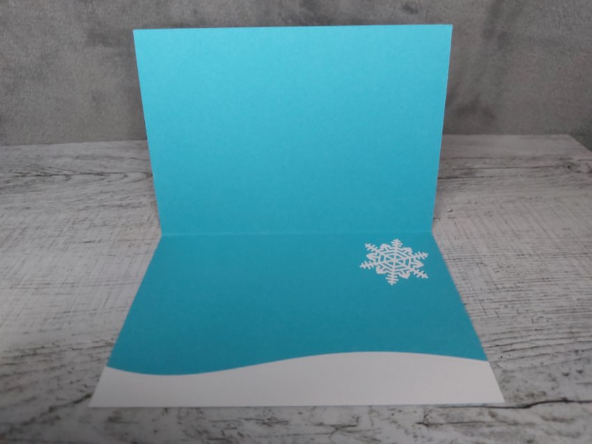 Grußkarte Frohe Weihnachten Eskimo handgemacht aus Farbkarton, mit ausgestanzten und gestempleten Eskimos sowie einem ausgestanzten Schriftzug.