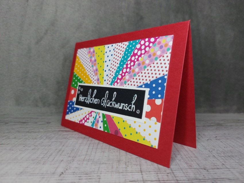 Grußkarte Glückwunschkarte mit Strahlen handgemacht aus Farbkarton mit Strahlen aus Designerpapier und embosstem Schriftzug.