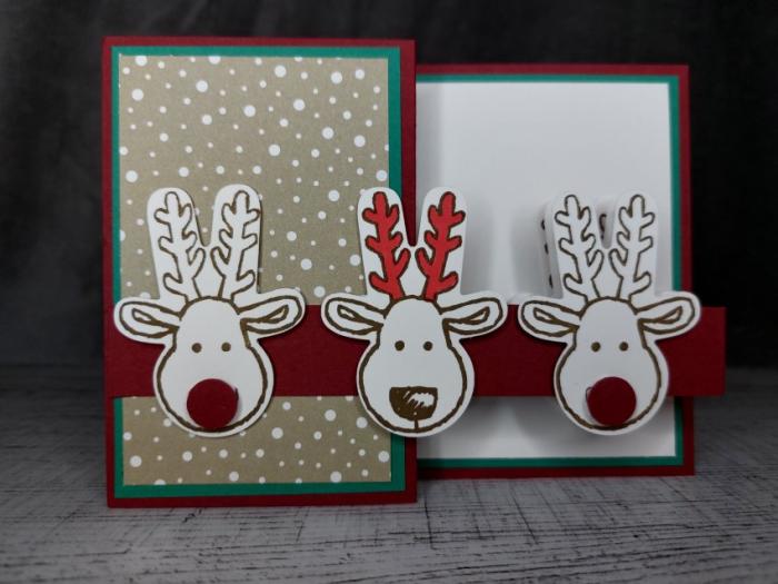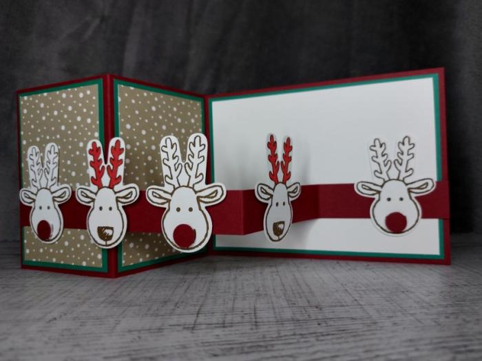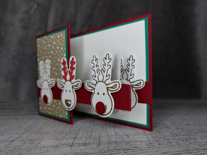 Grußkarte Weihnachten mit Elchen handgemacht aus Farbkarton. Faltkarte zum Ausklappen.