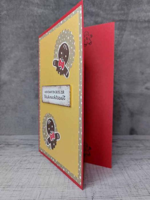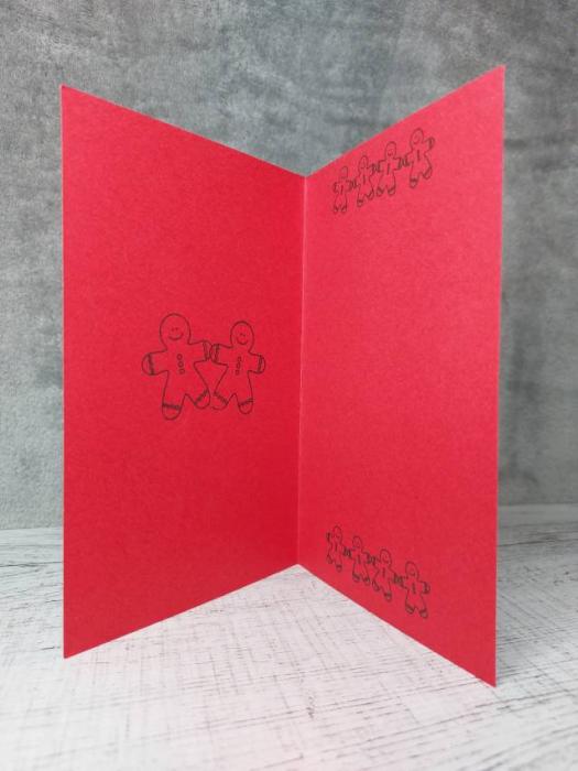 Auch auf der Innenseite und auf dem passenden Umschlag sind gestemplete Lebkuchenmänner.